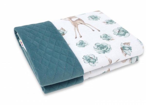Baby Nellys Oboustranná proš. deka Bavlna + Velvet 100x70cm, Srnka a růže, mátová