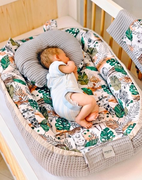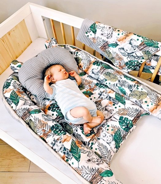 Baby Nellys Oboustranné hnízdečko Vafel, 60 x 90 cm, Jungle - šedá