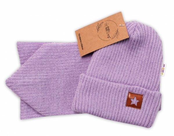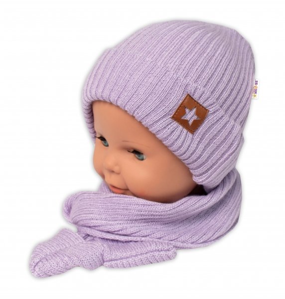 Baby Nellys Pletená čepice s šálou a rukavičky 3v1, STAR