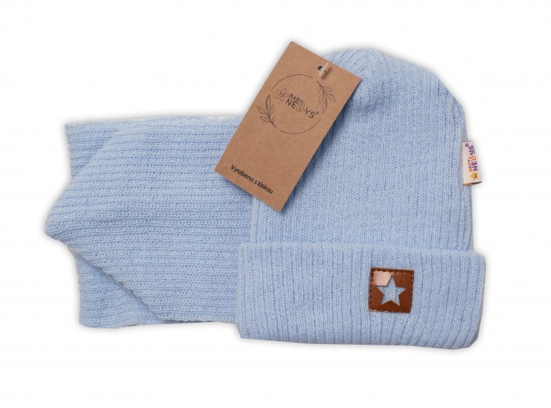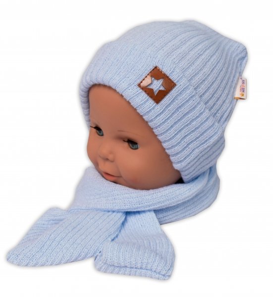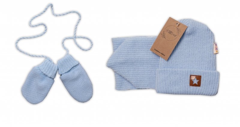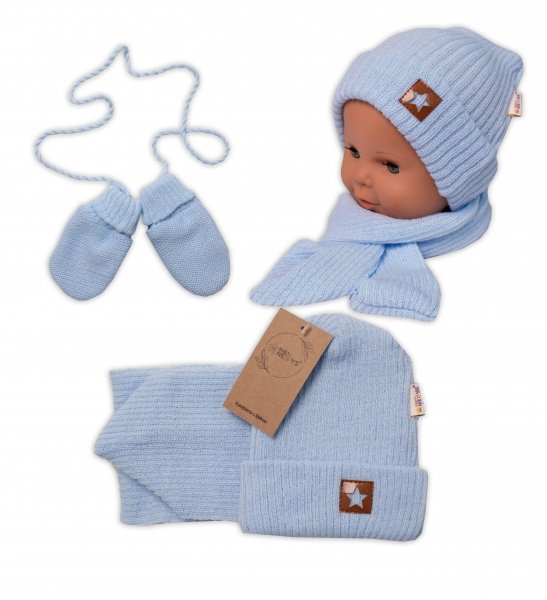 Baby Nellys Pletená čepice s šálou a rukavičky 3v1, STAR - sv.