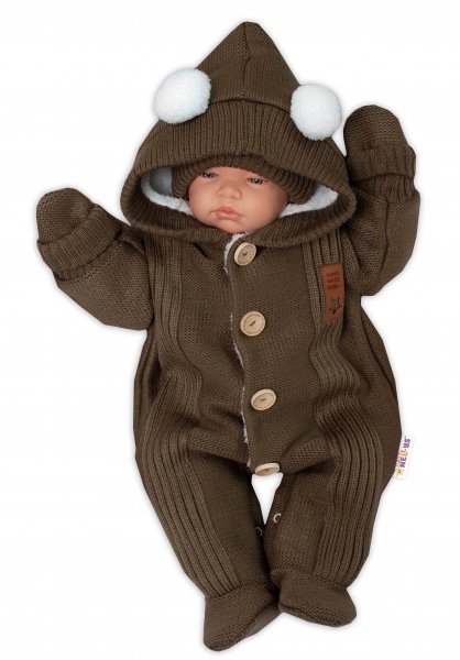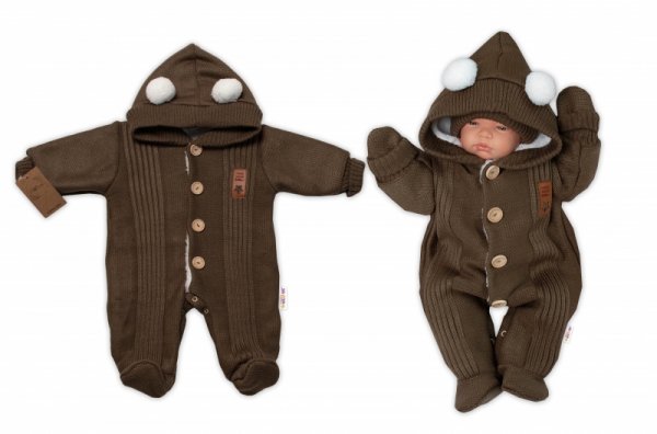 Baby Nellys Pletená kombinéza/overal LUX STAR s kožíškem - dvouvrstvá