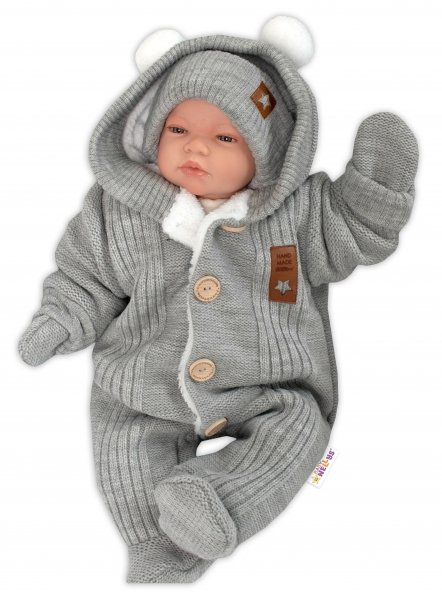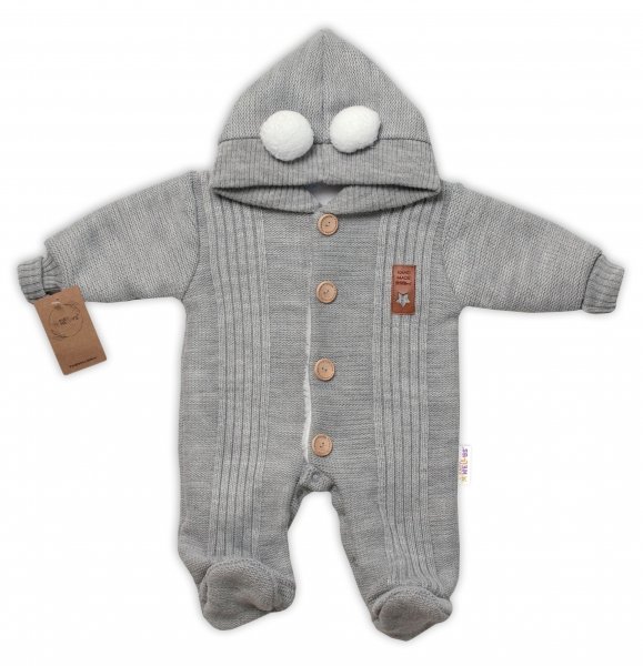 Baby Nellys Pletená kombinéza/overal LUX STAR s kožíškem - dvouvrstvá