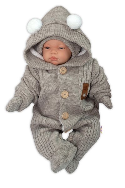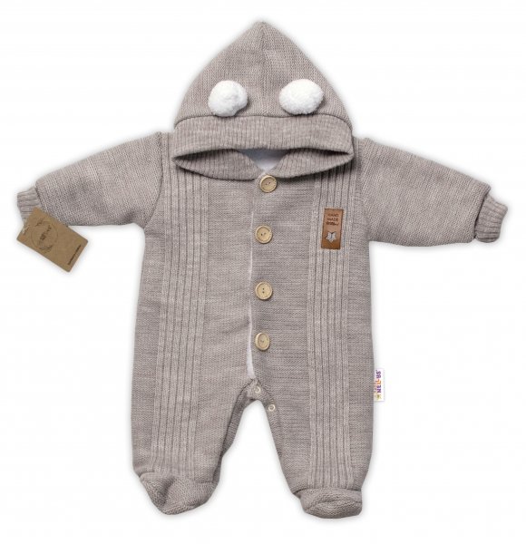 Baby Nellys Pletená kombinéza/overal LUX STAR s kožíškem - dvouvrstvá