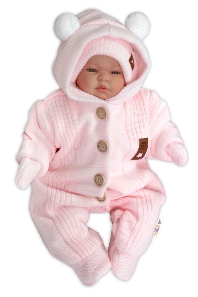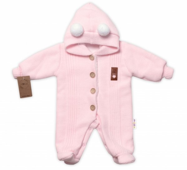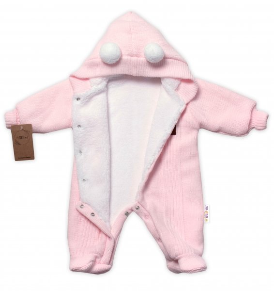 Baby Nellys Pletená kombinéza/overal LUX STAR s kožíškem - dvouvrstvá, sv.