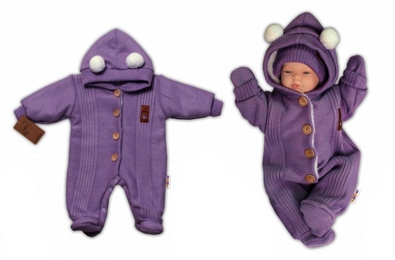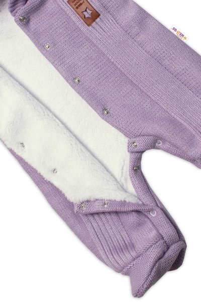 Baby Nellys Pletená kombinéza/overal LUX STAR s kožíškem - dvouvrstvá, švestková, vel. 68 - 68 (3-6m)