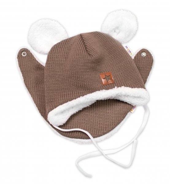 Baby Nellys Pletená zimní čepice s kožíškem a šátkem Star