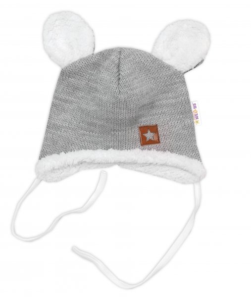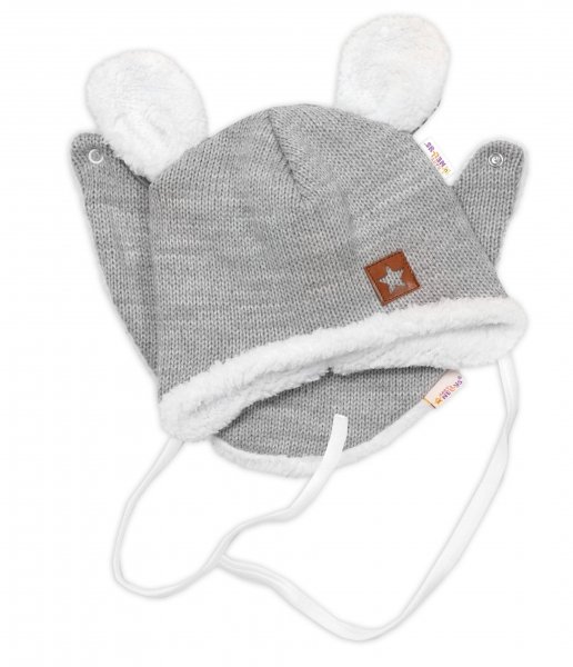 Baby Nellys Pletená zimní čepice s kožíškem a šátkem Star