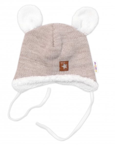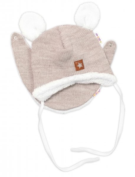 Baby Nellys Pletená zimní čepice s kožíškem a šátkem Star