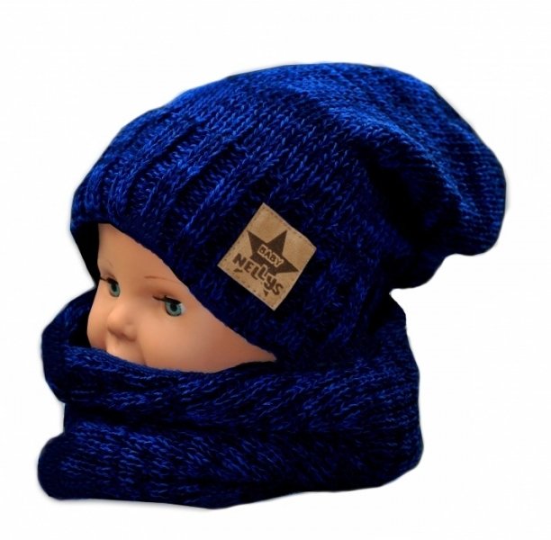 BABY NELLYS Podzimní/zimní čepice s komínkem - granátový melír