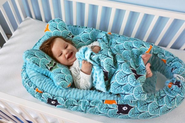 Oboustranný kokon s minky - přítulné hnízdečko pro miminko s výbavou.