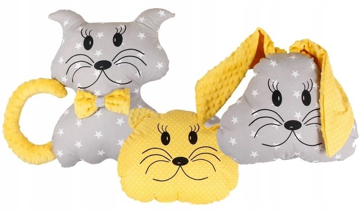 4. Tři dvoubarevné polštáčky v barvách stanu - zvířátka.