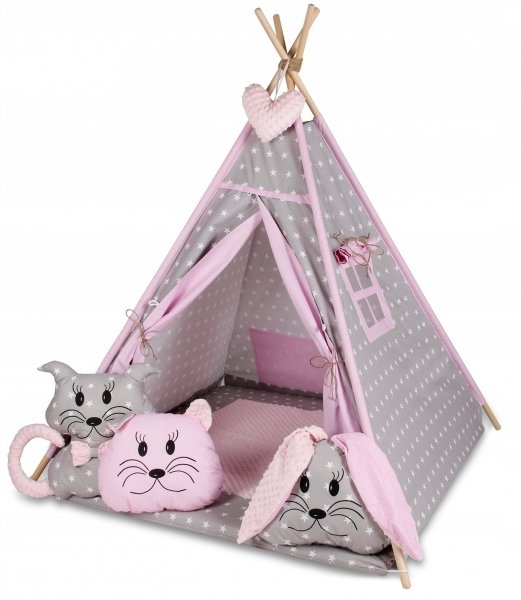 Baby Nellys Stan pro děti týpí s velkou výbavou - šedý, růžový