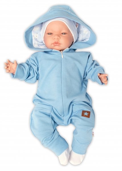 Baby Nellys Teplákový overal s kapucí a kapsičkami, New Bunny - sv.
