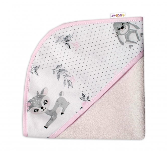 Baby Nellys Termoosuška s kapucí pro panenky, Koloušek, 45x45cm, růžová