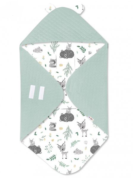Baby Nellys zavinovací deka s kapucí Velvet/bavlna, New Forest Friends - mátová