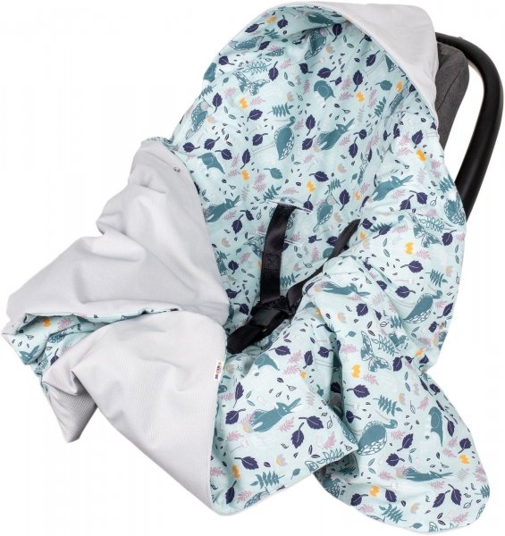 Baby Nellys Zavinovací deka Velvet s kapucí Boho Lesík, mátová/šedá