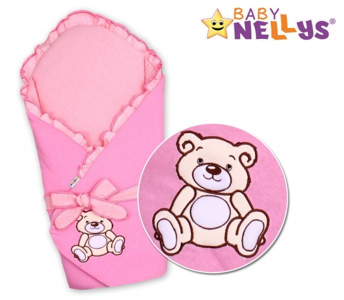 Baby Nellys Zavinovačka s výztuží Teddy Bear - jersey - růžová - S vyztuží zad