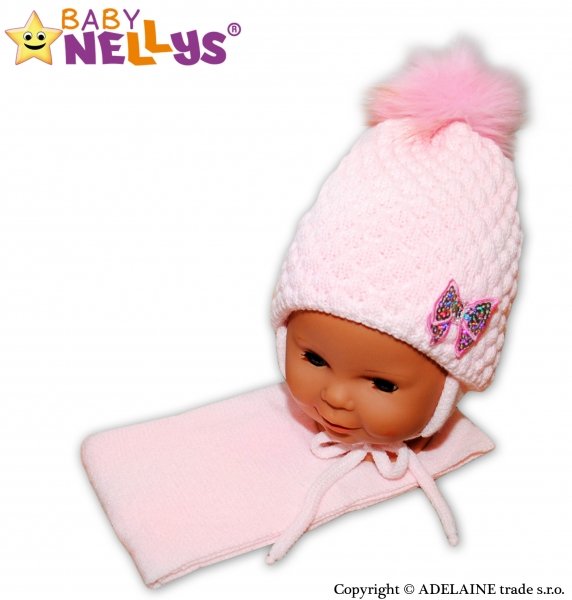BABY NELLYS Zimní čepice/čepička Mašlička - světle růžová - 12/24měsíců