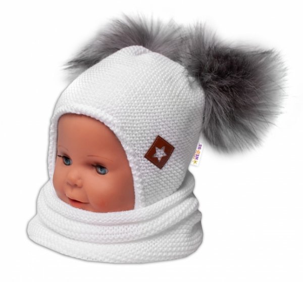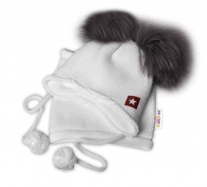 BABY NELLYS Zimní čepice s fleecem a chlupáčkové bambulky Star + komínek