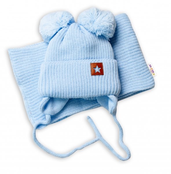 BABY NELLYS Zimní čepice s šálou STAR - modrá s