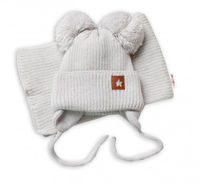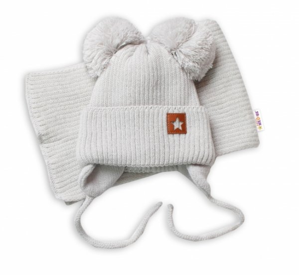 BABY NELLYS Zimní čepice s šálou STAR - šedá s