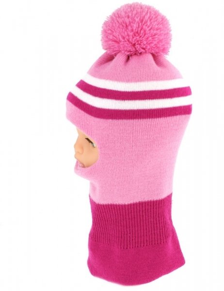 BABY NELLYS Zimní čepička/kukla s bambuli - růžová s proužky