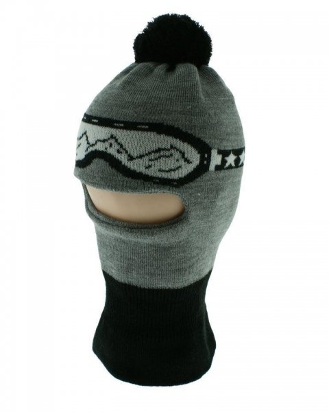 BABY NELLYS Zimní čepička/kukla s bambuli - šedá s brýlemi