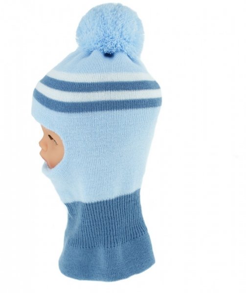 BABY NELLYS Zimní čepička/kukla s bambuli - sv. modrá s proužky