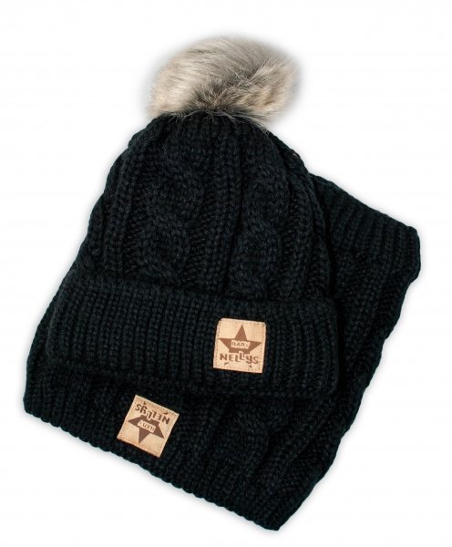 BABY NELLYS Zimní pletená čepice s bambulí + komínek