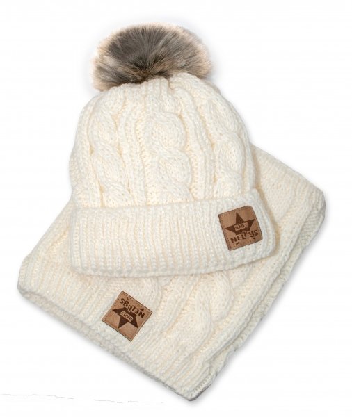 BABY NELLYS Zimní pletená čepice s bambulí + komínek