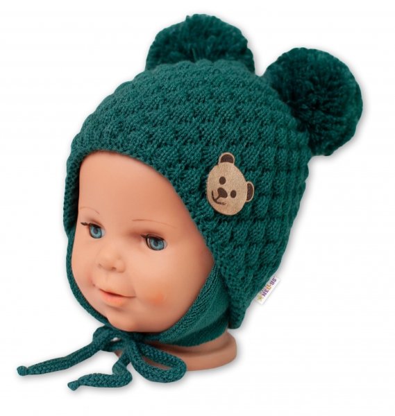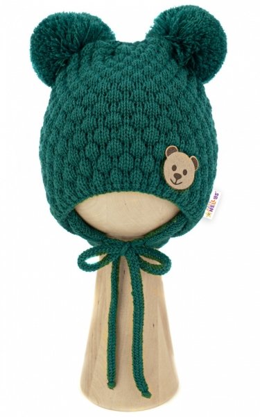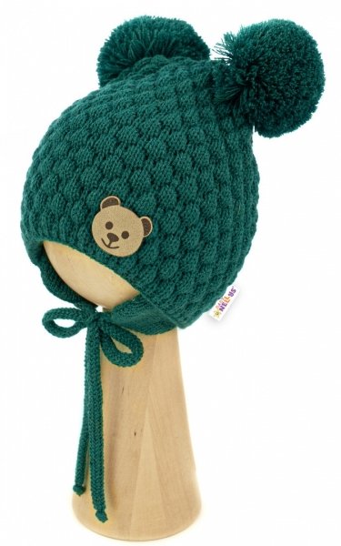 BABY NELLYS Zimní pletená čepice Teddy Bear na zavazování
