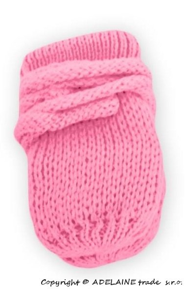 BABY NELLYS Zimní pletené kojenecké rukavičky - růžové - 86 (12-18m)