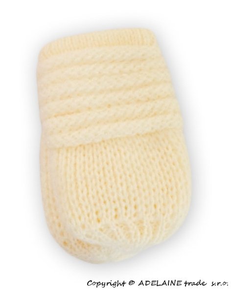 BABY NELLYS Zimní pletené kojenecké rukavičky - smetana - 0-1rok