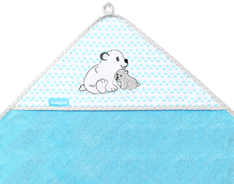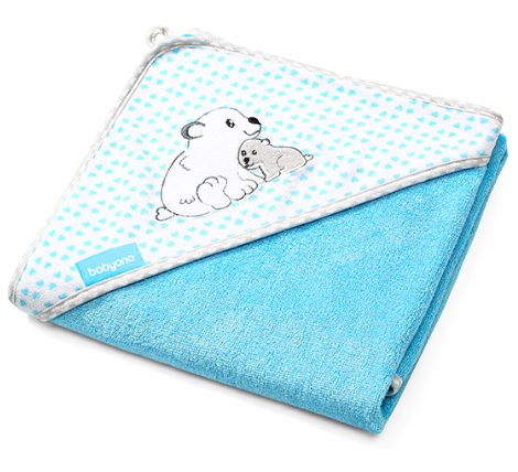 BabyOno Bambusová osuška s kapucí Medvídek - modrá, 100 x 100 cm