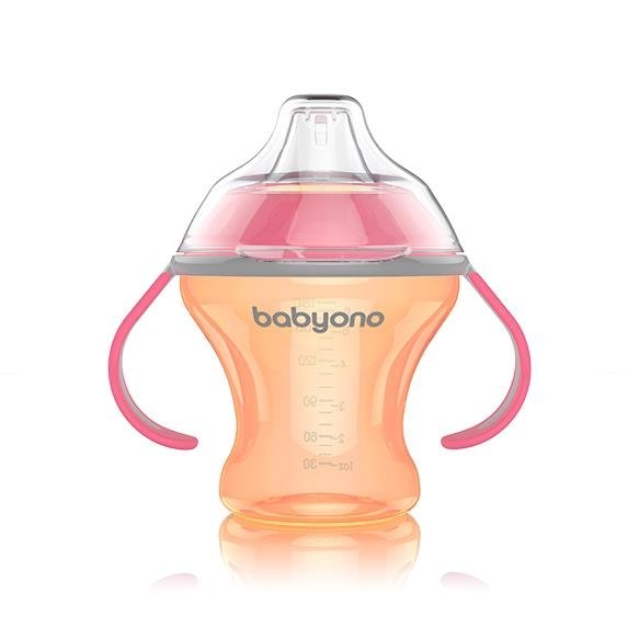 BabyOno Nekapající hrneček s měkkým pítkem - oranžovo/růžový