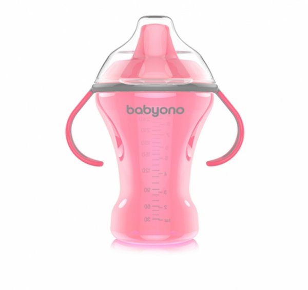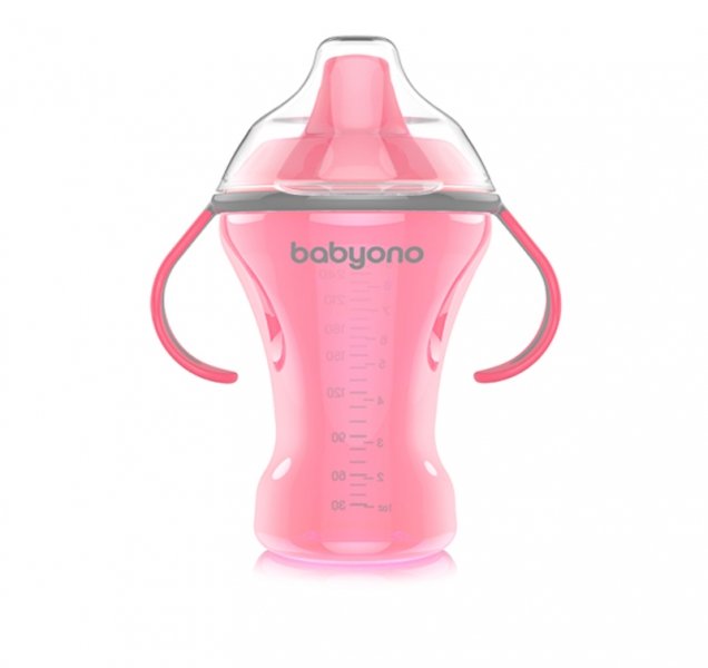 Ergonomický tvar lahvičky a pogumované úchyty usnadňují dítěti držení hrnečku.