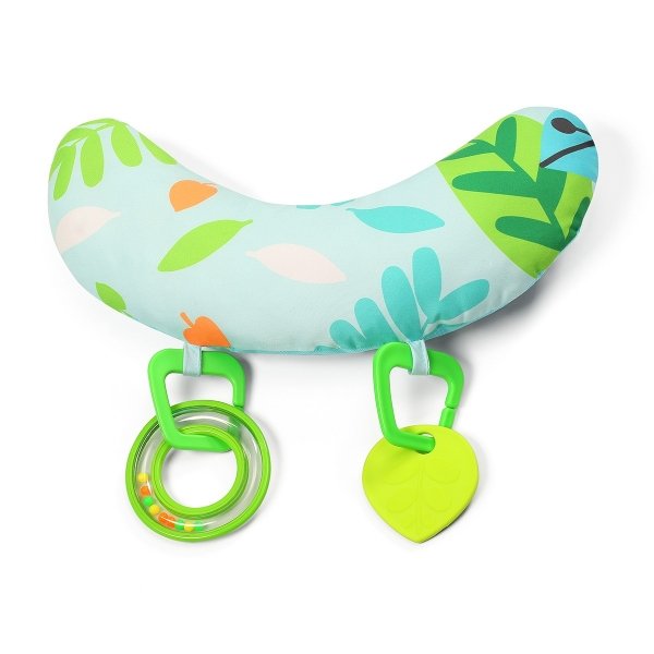 Hrací deka je vybavená polštářkem s kousátky a chrastítky.