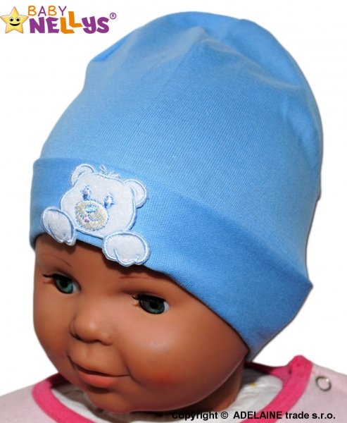 Bavlněná čepička Baby Nellys ® Medvídek - modrá - 38/42 čepičky obvod