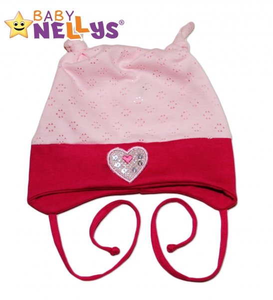 Bavlněná čepička Srdíčko Baby Nellys ® - sv.růžová/tm. růžová