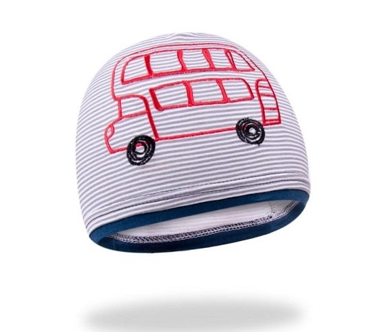 Bavlněná čepička YO ! School bus - šedo/granátová - 48/50 čepičky obvod