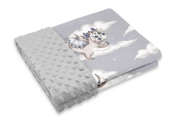 Bavlněná deka s Minky 100 x 75 cm, Dráček Mráček - šedá/modrá