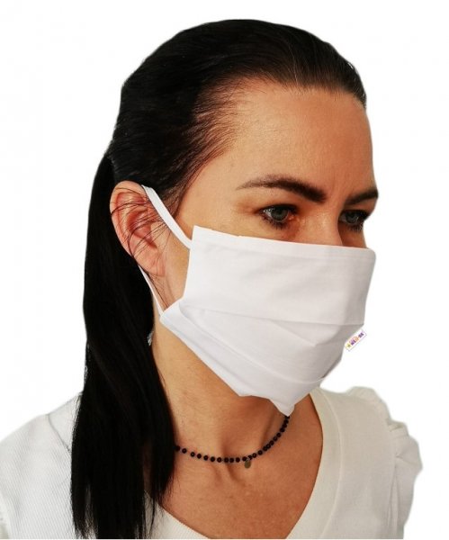 Bavlněná rouška, dvouvrstvá s kapsou na filtr na gumičku - bílé