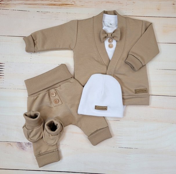 Bavlněná sada, body, kalhoty, motýlek a čepice Elegant Boy 5D, Kazum