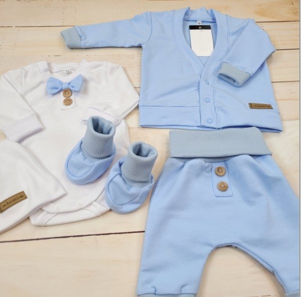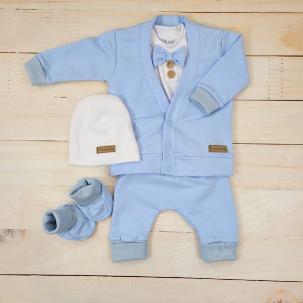 Bavlněná sada, body, kalhoty, motýlek a čepice Elegant Boy 5D, Kazum