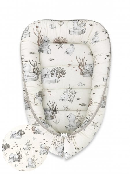 Bavlněné oboustranné hnízdečko , 55 x 75 cm, Lachtánek - béžová
