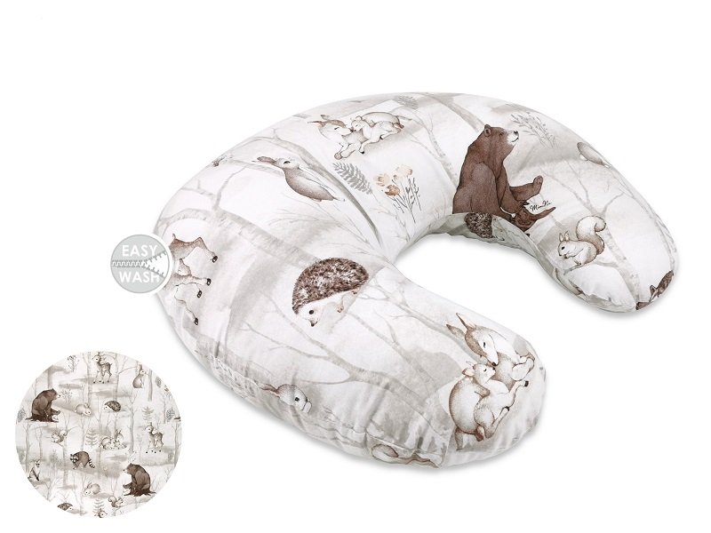 Bavlněný kojící polštář/podkova, Medvěd a kamarádi - šedá, béžová