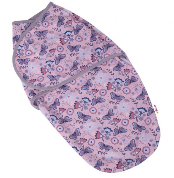 Bavlněný zavinovací vak, zavinovačka Baby Nellys, Motýlci, růžovo/fialový s potiskem