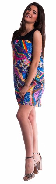 Barevné těhotenské šaty bez rukávů.