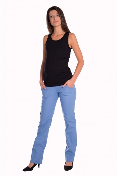 Be MaaMaa Bavlněné, těhotenské kalhoty s kapsami - sv. modré