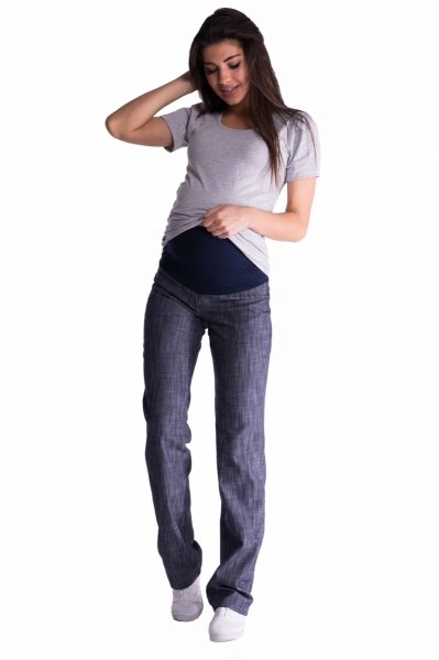 Be MaaMaa Bavlněné, těhotenské kalhoty s regulovatelným pásem - tm.